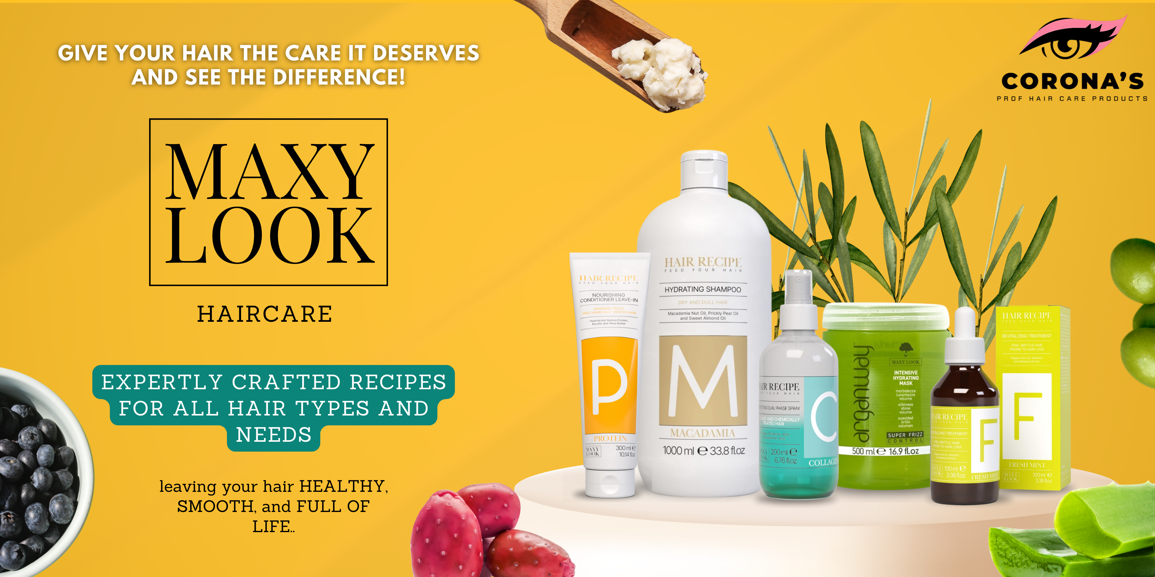 Founded in 2016, Maxy Look offers 10 complete hair treatment lines and 1 technical line dedicated to salon professionals, with formulas developed in our laboratories to ensure maximum effectiveness with complete safety.  Enjoy the treasures offered by Mother Nature and the extraordinary benefits of superfoods to nourish the hair ecosystem and keep your hair beautiful and healthy. This is Maxy Look’s mission.