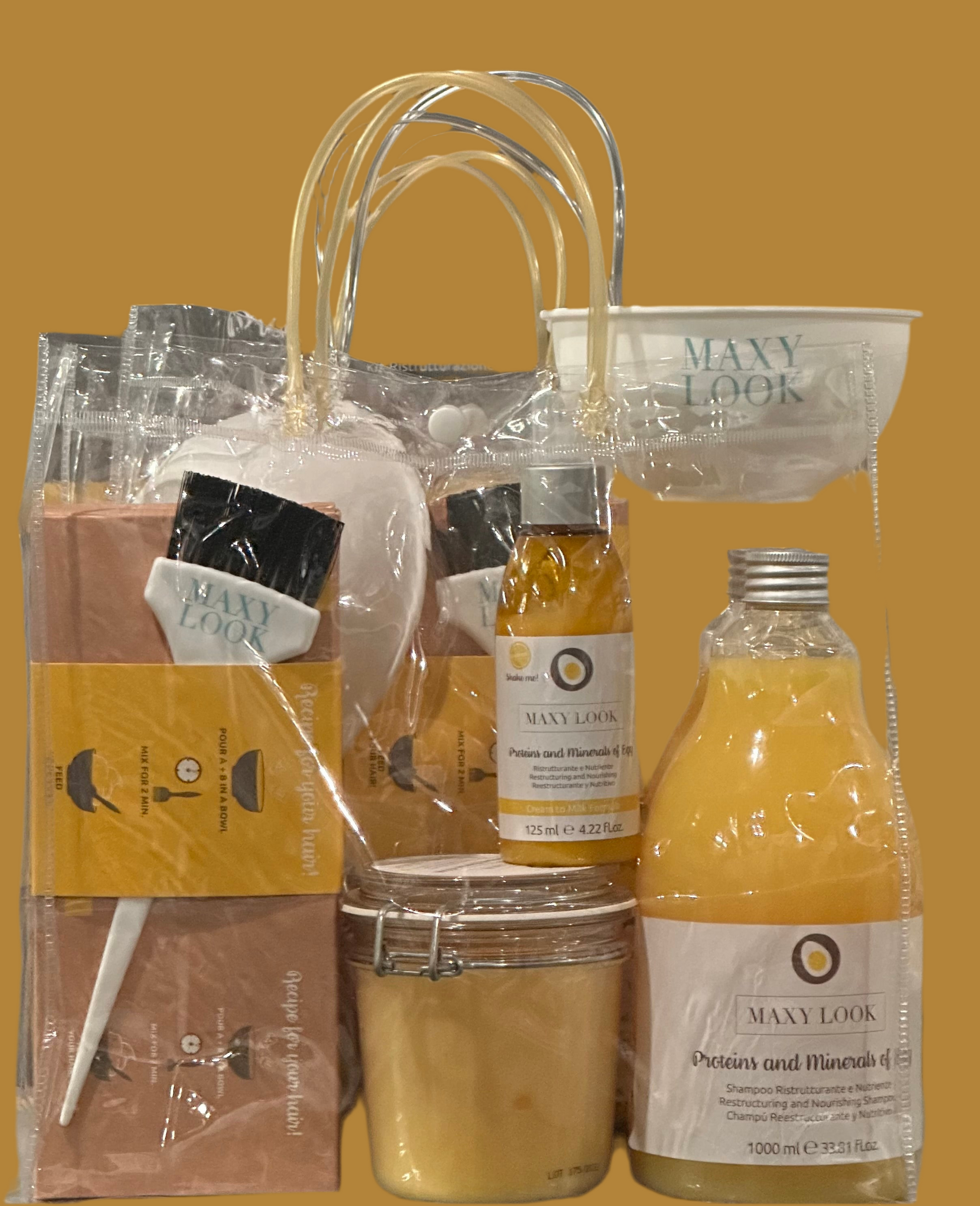 Kit de reestructuración profunda Maxy Look Egg Line de 4 piezas con lazo, cepillo y bolsa adicionales